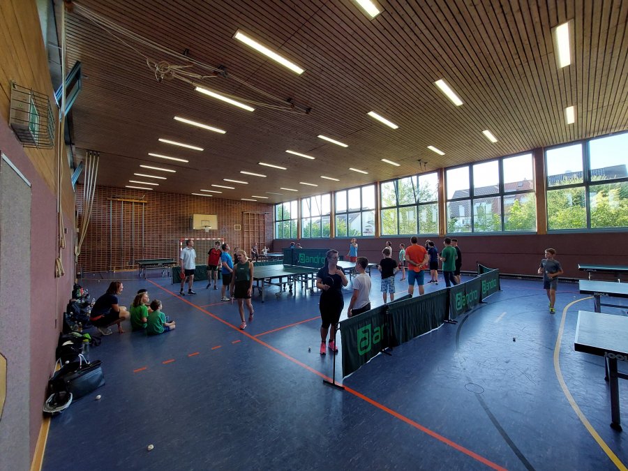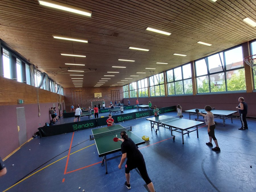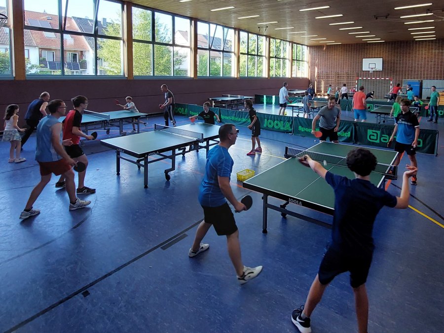 Am Donnerstagabend, den 06.07.2023 war die Halle nicht nur durch eine Vielzahl von Kindern gut gefüllt, sondern auch viele Mamas, Papas und Geschwister hatten sich um 18 Uhr zum Tischtennis spielen versammelt. Mit der überwältigenden Anzahl von 14 Teams begann nach ein paar Minuten des Plattenaufbaus und anschließendem Einspielens das 1. Rutesheimer Tischtennis Eltern-Kind-Turnier. Gespielt wurden Doppelpartien in vier gelosten und jeweils 3-4 Teams starken Gruppen.
