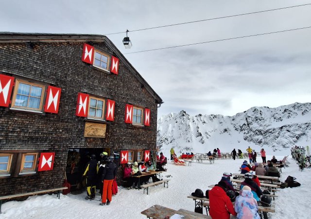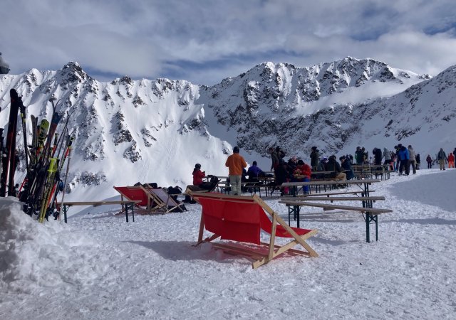 Am Samstagmorgen machten sich dann alle zusammen in Richtung Gondel auf, da das Wetter einen sehr guten Tag versprach. Und die Gruppe wurde nicht enttäuscht, sowohl am Samstag als auch am Sonntag war die meiste Zeit nur wenige Wolken am Himmel zu sehen und die Sonne schien kräftig. So konnte man an beiden Tagen einige Pisten herunterfahren und zwischendurch die Sonne auf einer der vielen Hütten genießen.