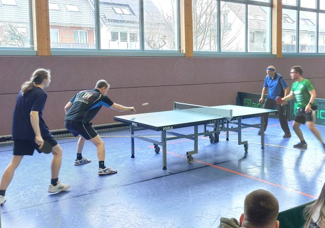 Traditionell wurden die Doppelpaarungen anhand der TTR-Punkte ausgelost, was u. a. zu dem Vater-Sohn-Doppel der Familie Sauter führte. In der insgesamt 14. Partie des Tages kam es zum Duell Jürgensen/Metz, S. und Rupp/Prosenbauer. Letztere mussten den Umweg über die Trostrunde gehen, konnten sich dann aber im Finale mit 3:0 durchsetzen.