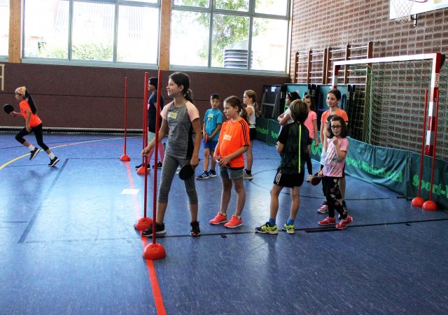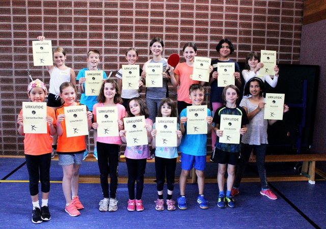 Am 23. August kamen um 9.00 Uhr 15 motivierte Kinder in die Theodor-Heuss-Halle, um bei dem Sommerferienprogramm „Tischtennis Schnuppertraining“ die Grundlagen des Tischtennis zu erlernen. Am Morgen haben wir bei verschiedenen Übungen die richtige Schlägerhaltung gelernt und uns mit Geschicklichkeitsübungen an den Tischtennisball und den Schläger gewöhnt. Bis zum Mittagessen haben wir dann die Grundschläge Vorhand- und Rückhandkonter, Rückhandunterschnitt und Topspin gelernt und verschiedene Aufschläge ausprobiert. Alle Kinder haben motiviert mitgemacht und ließen sich anschließend die belegten Brötchen schmecken. Gestärkt durch das Mittagessen ging das Schnuppertraining dann mit einem Abschlussturnier in zwei Gruppen zu Ende. Wir hoffen, es hat euch allen genau so viel Spaß gemacht wie uns. Falls ja, schaut doch einfach mal bei uns im Training vorbei!