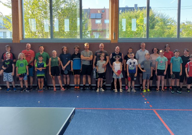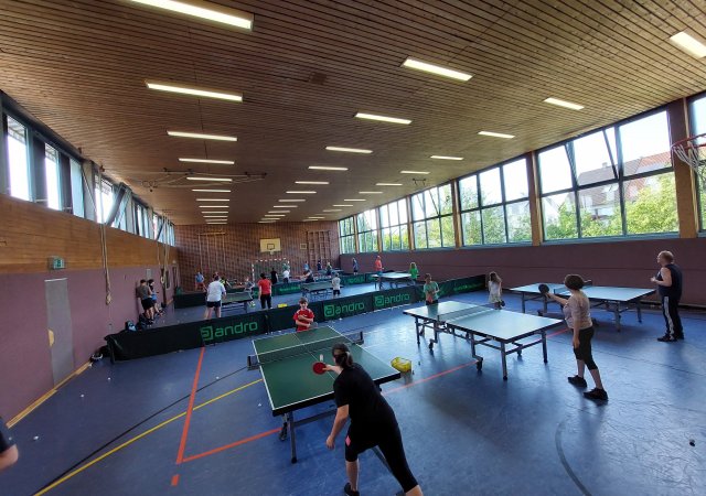 Am Donnerstagabend, den 06.07.2023 war die Halle nicht nur durch eine Vielzahl von Kindern gut gefüllt, sondern auch viele Mamas, Papas und Geschwister hatten sich um 18 Uhr zum Tischtennis spielen versammelt. Mit der überwältigenden Anzahl von 14 Teams begann nach ein paar Minuten des Plattenaufbaus und anschließendem Einspielens das 1. Rutesheimer Tischtennis Eltern-Kind-Turnier. Gespielt wurden Doppelpartien in vier gelosten und jeweils 3-4 Teams starken Gruppen.
