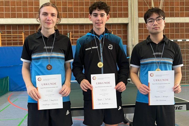 Mit einem ungefährdeten 6:3-Erfolg über den Gast aus Renningen-Malmsheim krönte die erste Rutesheimer Jugendmannschaft in der U19-Bezirksklasse eine starke Halbrunde mit dem Aufstieg und spielt ab Januar 2026 wieder in der Bezirksliga. Nur beim 5:5-Unentschieden am dritten Spieltag beim härtesten Konkurenten und Zweitplatzierten aus Böblingen waren die Drei stärker gefordert – alle anderen Spiele konnten zum Teil deutlich gewonnen werden. Das Rutesheimer Team mit im Bild von l.n.r. Lukas Hauptmann, Maximilian Baitinger und Minh Duc Nguyen brachte das Kunststück fertig, in allen Partien in Stammbesetzung anzutreten, was in der Bezirksklasse keine andere Mannschaft schaffte. Basis für den Erfolg war auch das Rutesheimer Trainingskonzept, dass den trainingsfleißigen Jungs unter dem erfahrenen Trainer Joachim Günther spielstarke Erwachsene als Trainingspartner vorsieht.