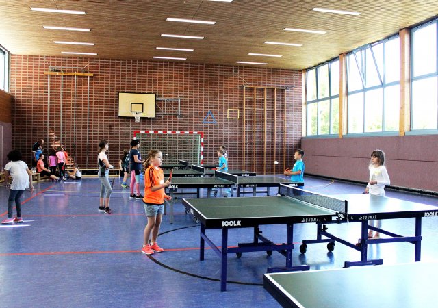 Am 23. August kamen um 9.00 Uhr 15 motivierte Kinder in die Theodor-Heuss-Halle, um bei dem Sommerferienprogramm „Tischtennis Schnuppertraining“ die Grundlagen des Tischtennis zu erlernen. Am Morgen haben wir bei verschiedenen Übungen die richtige Schlägerhaltung gelernt und uns mit Geschicklichkeitsübungen an den Tischtennisball und den Schläger gewöhnt. Bis zum Mittagessen haben wir dann die Grundschläge Vorhand- und Rückhandkonter, Rückhandunterschnitt und Topspin gelernt und verschiedene Aufschläge ausprobiert. Alle Kinder haben motiviert mitgemacht und ließen sich anschließend die belegten Brötchen schmecken. Gestärkt durch das Mittagessen ging das Schnuppertraining dann mit einem Abschlussturnier in zwei Gruppen zu Ende. Wir hoffen, es hat euch allen genau so viel Spaß gemacht wie uns. Falls ja, schaut doch einfach mal bei uns im Training vorbei!