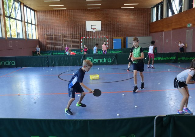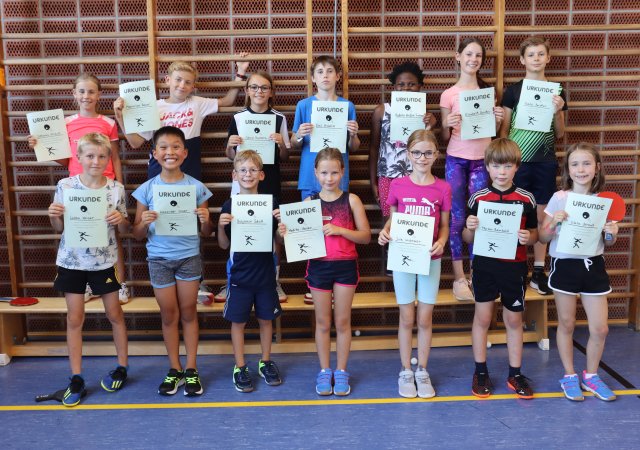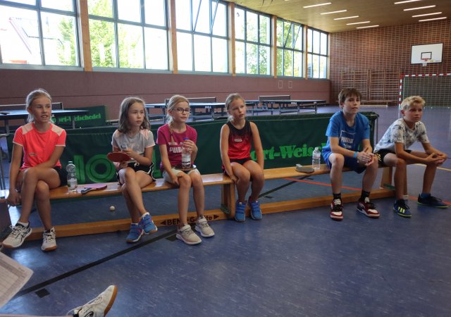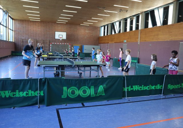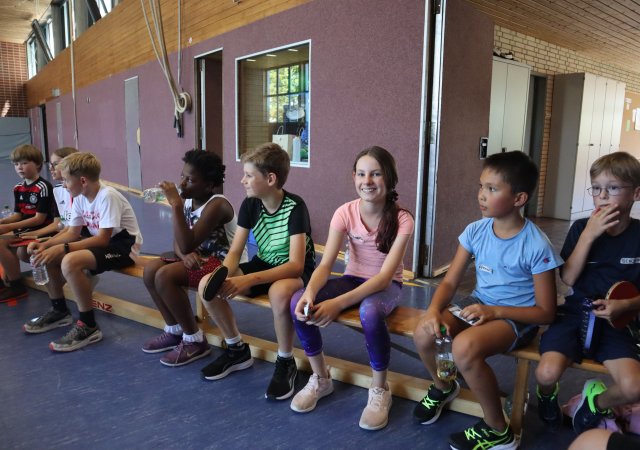 Am 3. August kamen um 9.00 Uhr 14 motivierte Kinder in die Theodor-Heuss-Halle, um bei dem Sommerferienprogramm „Tischtennis Schnuppertraining“ die Grundlagen des Tischtennis zu erlernen. Am Morgen haben wir bei verschiedenen Übungen die richtige Schlägerhaltung gelernt sowie uns mit Geschicklichkeitsübungen an den Tischtennisball und den Schläger gewöhnt. Bis zum Mittagessen haben wir dann die Grundschläge Vorhand- und Rückhandkonter, Rückhandunterschnitt und Topspin gelernt und verschiedene Aufschläge ausprobiert. Alle Kinder haben motiviert mitgemacht und ließen sich anschließend die (Butter-)Brezeln sowie weitere Snacks schmecken. Gestärkt durch das Mittagessen ging das Schnuppertraining dann mit einem Abschlussturnier in zwei Gruppen zu Ende. Wir hoffen, es hat euch allen genau so viel Spaß gemacht wie uns.