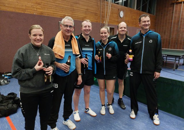 Für jeden Spieler der beiden Teams ergaben sich im Laufe des Abends zwei Einzel- sowie eine Doppelbegegnung, durch welche Punkte für das eigene Team erspielt werden konnten. Nach vielen interessanten Begegnungen erspielten sich schlussendlich mit 9:6 die "Nikoläuse" (Peter, Ebi, Markus, Simon, Michael und Bernd) den Sieg. Dennoch kam aber auch der Spaß bei den knapp unterlegenen "Weihnachtsmännern" (Julie, Fin, Tobi, Linda, Hajü und Christian) nicht zu kurz und auch sie konnten sich hinterher über etwas Schokolade zur Stärkung freuen. Somit war das 30. Weihnachtsturnier auch im Jahr 2023 ein gelungener Jahresabschluss für die Tischtennisabteilung.