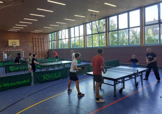 Am Donnerstagabend, den 18.07.2024 war die Halle nicht nur durch eine Vielzahl von Kindern gut gefüllt, sondern auch viele Mamas, Papas, Tanten und Geschwister hatten sich um 18 Uhr zum Tischtennis spielen versammelt. Nach dem großen Erfolg im letzten Jahr fand an diesem Abend das 2. Eltern-Kind-Turnier der Rutesheimer Tischtennisabteilung statt.