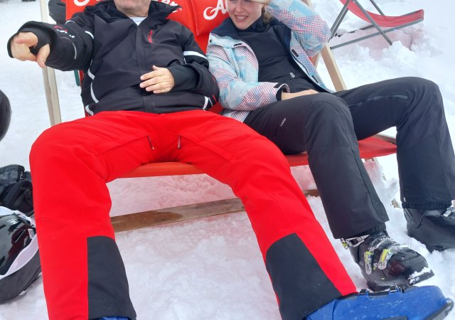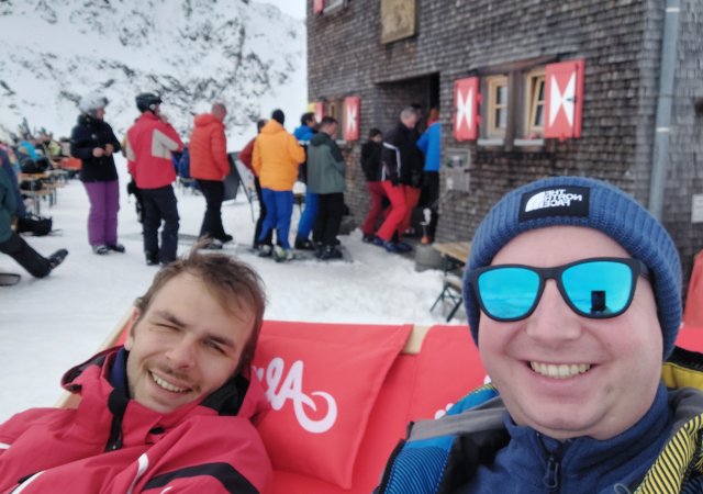 Am Samstagmorgen machten sich dann alle zusammen in Richtung Gondel auf, da das Wetter einen sehr guten Tag versprach. Und die Gruppe wurde nicht enttäuscht, die meiste Zeit waren nur wenige Wolken am Himmel zu sehen und die Sonne schien kräftig. So konnte man einige Pisten herunterfahren und zwischendurch die Sonne auf einer der vielen Hütten genießen. Nach weiteren Pistenkilometer unter Schneefall trat die Gruppe am Sonntagnachmittag wieder Richtung Rutesheim auf.