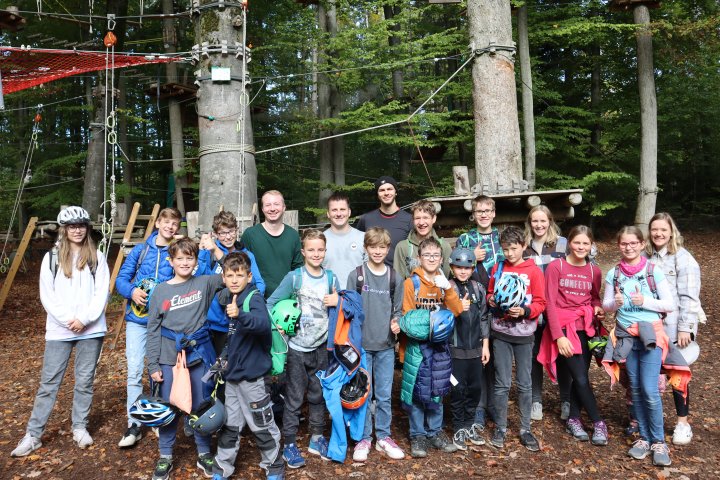 Am Sonntag trafen sich 14 kletterbegeisterte Jugendliche und 5 Trainer im Hochseilgarten in Rutesheim. Nach dem Einführungsvideo und dem Übungsparcours machten sich drei Gruppen auf den Weg die verschiedenen Parcours zu erklettern. In verschiedenen Schwierigkeitsgraden und Parcours bis 15 Meter Höhe kamen fast alle irgendwann an Ihre Grenzen und bei bestem Oktoberwetter vergingen die 3 Stunden Kletterzeit wie im Flug. Daher ist es kein Wunder, dass das anschließende Mittagessen allen sehr gut schmeckte. Vielen Dank, dass so viele von euch dabei waren. Wir fanden es war ein gelungener Ausflug :)