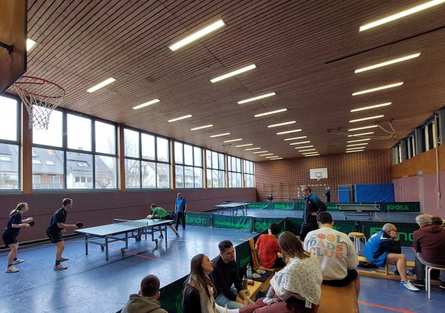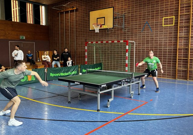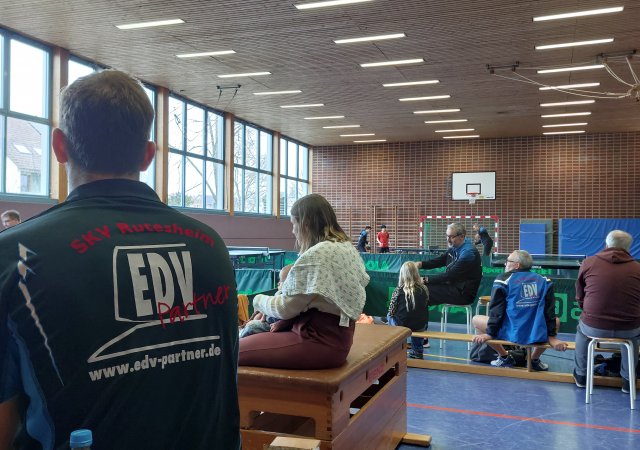 In 4 Vierergruppen konnten sich im Jeder-gegen-Jeden die jeweils beiden Bestplatzierten einer Gruppe fürs Viertelfinale qualifizieren. Erwartungsgemäß setzten sich die gesetzten Spieler durch – mit einer Ausnahme. Der stark aufspielende Tobias Sauter konnte sich in seiner Gruppe sogar als Erster gegen die gesetzte Konkurrenz durchsetzen, überstand mit einem 3:2-Erfolg gegen Emil Schächterle das Viertelfinale und musste dann aber im Halbfinale gegen Christian Choffat die Segel streichen. Letzterer stand im Endspiel Volker Rupp gegenüber, der bis dahin eine makellose Bilanz aufwies. Da beide sich bereits in der Vorrunde ein Duell auf Augenhöhe lieferten, dass Volker mit 3:2 knapp für sich entscheiden konnte, konnte ein ähnlich knappes Ergebnis fürs Finale erwartet werden. Vielleicht war es die bessere Kondition, die Volker bei seinen ersten Vereinsmeisterschaften in Rutesheim letzten Endes als Sieger von der Platte gehen ließ.