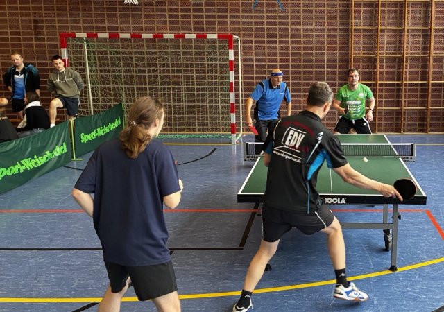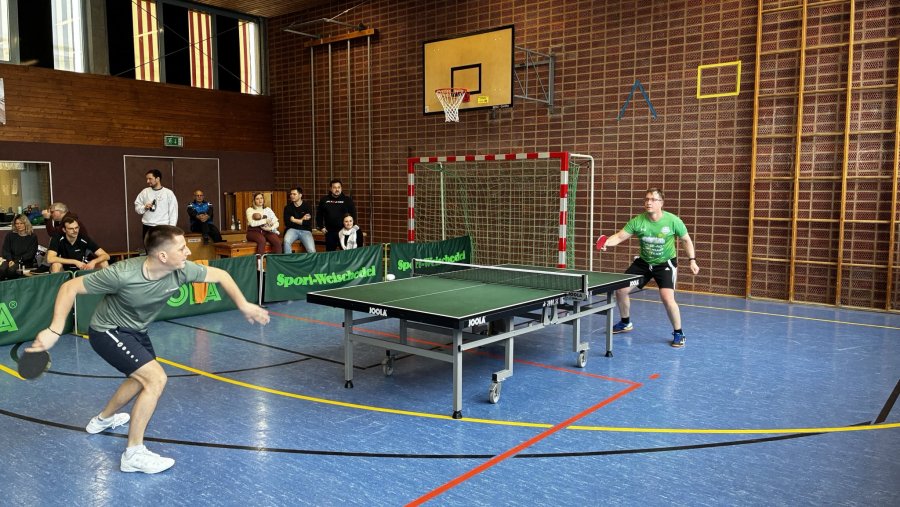 Traditionell wurden die Doppelpaarungen anhand der TTR-Punkte ausgelost, was u. a. zu dem Vater-Sohn-Doppel der Familie Sauter führte. In der insgesamt 14. Partie des Tages kam es zum Duell Jürgensen/Metz, S. und Rupp/Prosenbauer. Letztere mussten den Umweg über die Trostrunde gehen, konnten sich dann aber im Finale mit 3:0 durchsetzen.