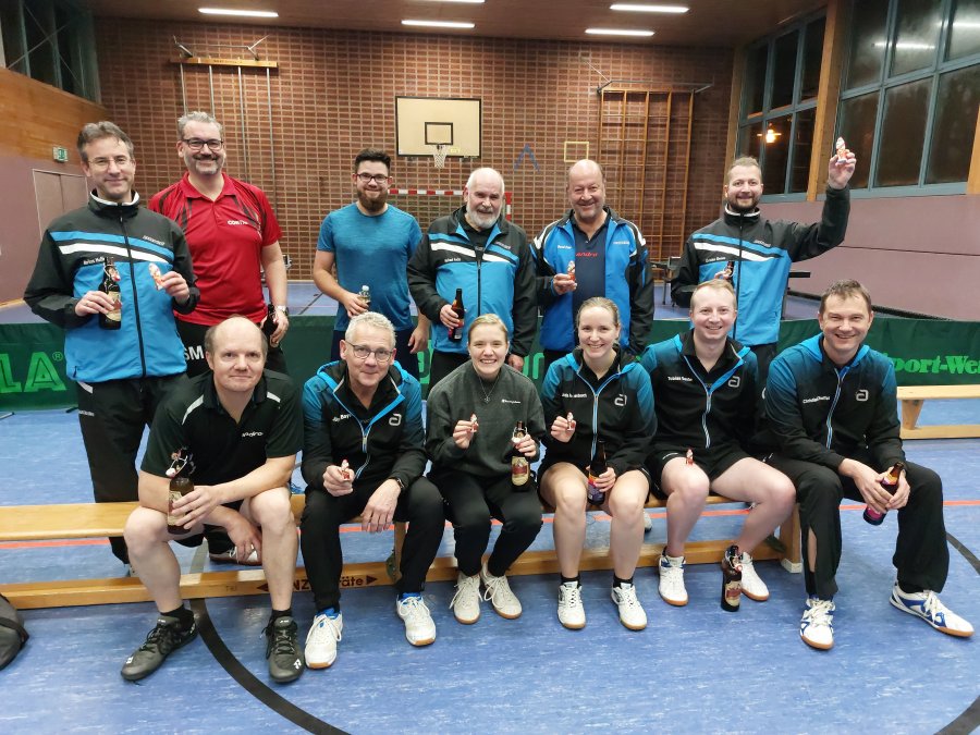Für jeden Spieler der beiden Teams ergaben sich im Laufe des Abends zwei Einzel- sowie eine Doppelbegegnung, durch welche Punkte für das eigene Team erspielt werden konnten. Nach vielen interessanten Begegnungen erspielten sich schlussendlich mit 9:6 die "Nikoläuse" (Peter, Ebi, Markus, Simon, Michael und Bernd) den Sieg. Dennoch kam aber auch der Spaß bei den knapp unterlegenen "Weihnachtsmännern" (Julie, Fin, Tobi, Linda, Hajü und Christian) nicht zu kurz und auch sie konnten sich hinterher über etwas Schokolade zur Stärkung freuen. Somit war das 30. Weihnachtsturnier auch im Jahr 2023 ein gelungener Jahresabschluss für die Tischtennisabteilung.